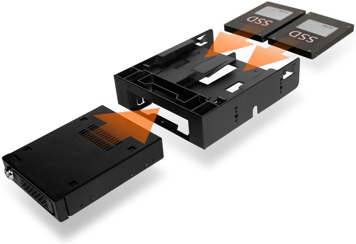 • Papildoma informacija 2x2,5 "+ 1x3,5" HDD / SSD įterpimui į 5,25 colių nišą
