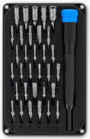 - Papildoma informacija Pilnas remonto rinkinys, atsuktuvas su magnetiniu antgalių laikikliu, 32 antgaliai ir laikymo dėžutė