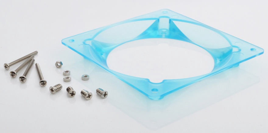 Papildoma informacijaAdapteris nuo 80/92 mm į 120 mm. 4 ventiliatoriaus varžtai. 4 tvirtinimo varžtai (M3x35 mm). Pagamintas iš akrilo. Spalva: UV mėlyna