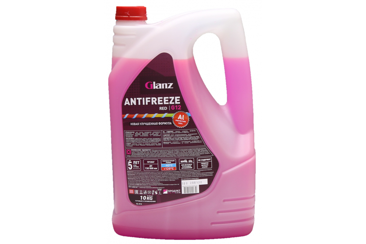 Антифриз Glanz G-12 красный 10 кг GL-010 подходит для большинства систем охлаждения бензиновых и дизельных двигателей. Специальные присадки обеспечивают максимальную защиту от образования пены, окисления , поверхностной, щелевой и электро-химической коррозии.