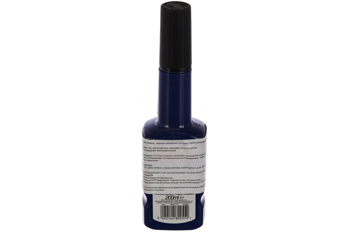 Зимняя обработка топлива с анти-гелем для дизельных двигателей STP 200 мл 55200EN предотвращает застывание и загустение топлива в зимнее время года, замерзание топливной магистрали, засорение фильтров и образование отложений в двигателе.