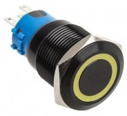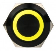 - Komplekte 1 x juodai dažytas jungiklis su (kombinuotu) plieniniu mygtuku su geltonu LED žiedu