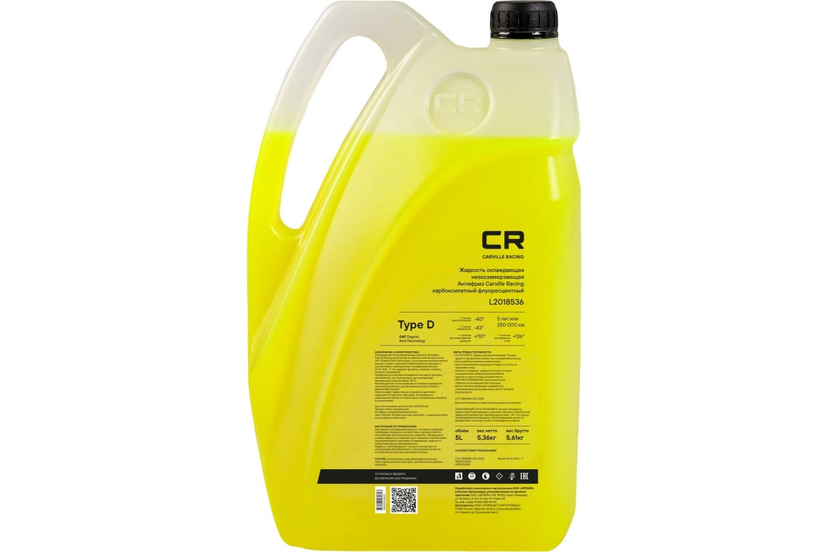 Антифриз CARVILLE RACING CR для Renault/Лада/Nissan, OAT, Type D, флуор, -40С, желтый, готовый L2018536