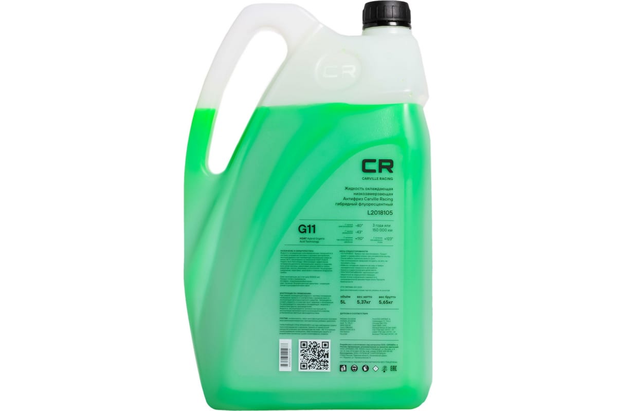 Антифриз CARVILLE RACING CR гибридный флуор, готовый, до -40С, G11, зеленый, 5 л/5.37 кг L2018105