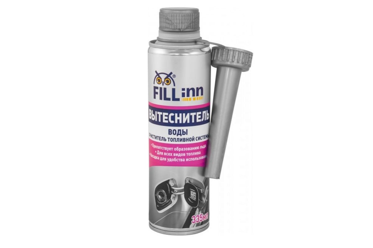 Вытеснитель влаги и очиститель FILL INN FL058 - эффективное средство для устранения влаги, наледи и посторонних частиц из топливной системы автомобиля. Средство дезактивирует свободную и растворенную в топливе воду. Очищает топливную систему от грязи, смолистых отложения, копоти и конденсата. Благоприятно воздействует на работу двигателя: сокращаются перебои, облегчается "холодный пуск". Раствор может применяться круглый год. В холодное время он защищает систему от замерзания, а в теплое - устраняет конденсат. Подходит для всех типов топлива. Объем - 335 мл.