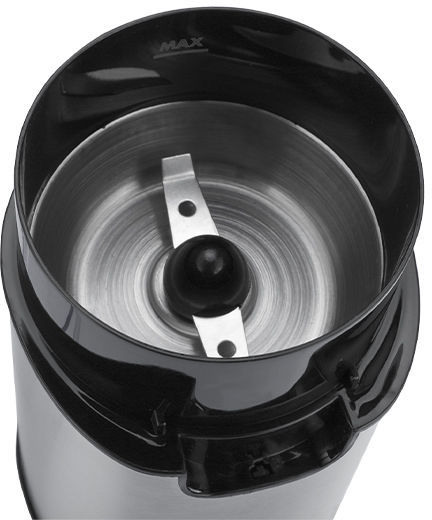 Ножевая кофемолка, мощность 200 Вт, вместимость 60 г, блокировка при включении.