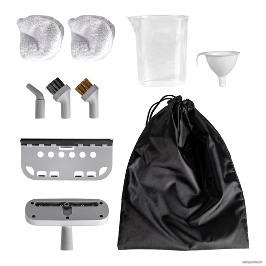 Дополнительные насадки и приспособления- насадка для отпаривания;- коннектор для подсоединения насадок;- нейлоновая щетка;- медная щетка;- щелевая насадка;- воронка;- мерный стакан;- мешок для хранения аксессуаров.