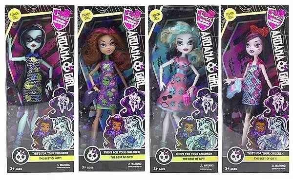 Длинные яркие волосы, руки и ноги на шарнирах, летнее платье и сумка , По м\ф "Монстр Хай". 4 вида. Коробка, 13х5х32 см.