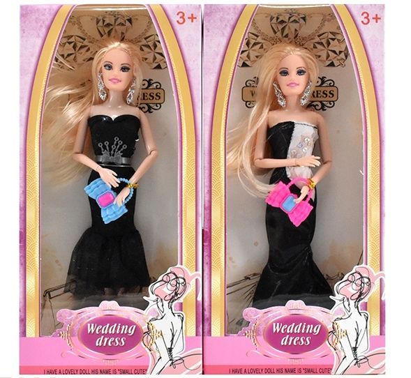 Кукла типа "Барби" в стильной, красивом платье с сумочкой и серьгами. Выполнена из пластика, руки на шарнирах. С резиновым, рисованным лицом. Длинные светлые волосы. В ассортименте. Коробка, 16х5х32,5 см.
