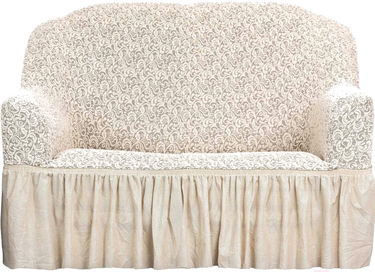 Чехол на 2-х местный диван Софатэкс Стандарт Венеция ПО-4 с оборкой / 01136 (ваниль)
