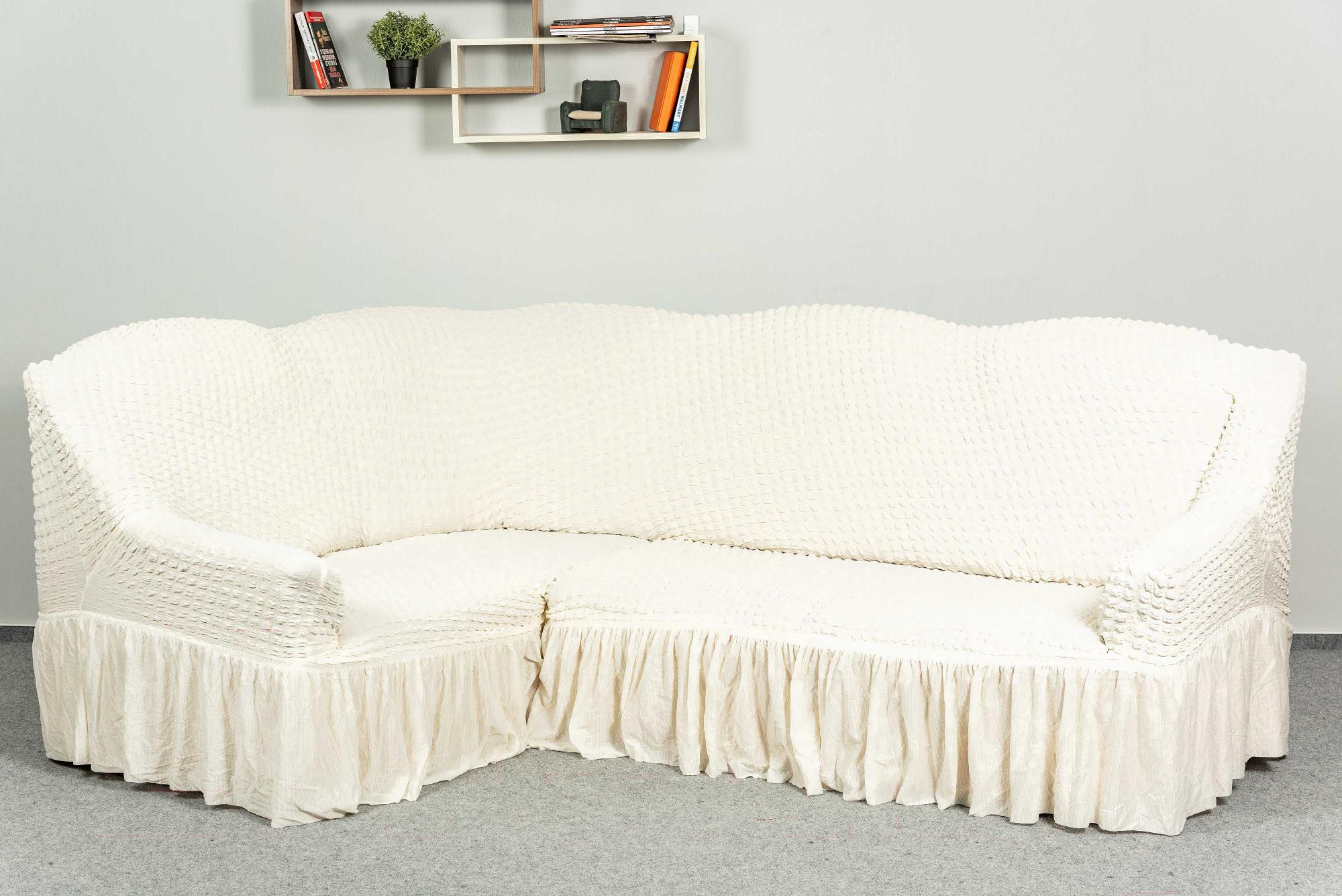 Чехол на угловой диван Софатэкс Люкс ПО-2 / 00865 (молочный)