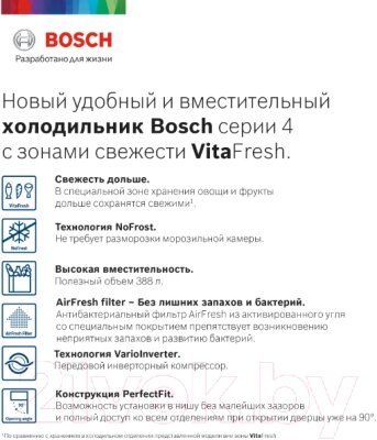 Холодильник с морозильником Bosch Serie 4 VitaFresh KGN39VW25R