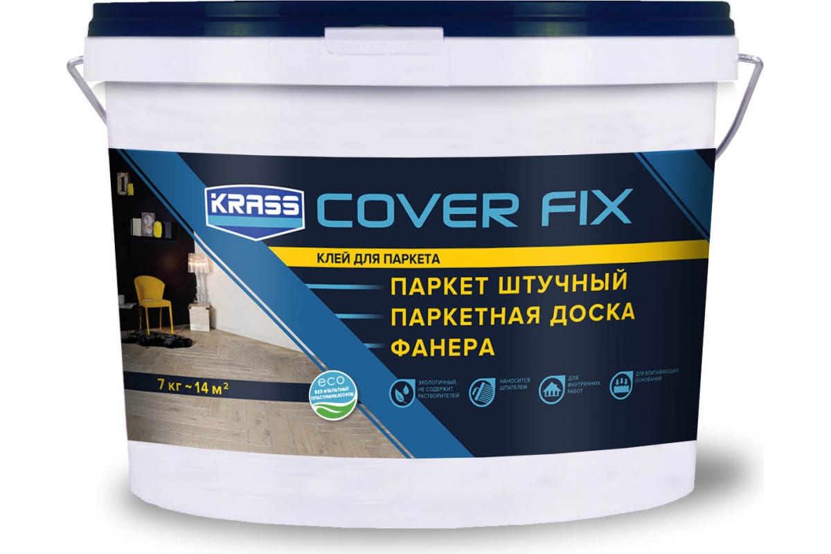Клей для паркета KRASS водно-дисперсионный, 7 кг Лк-00012450 предназначен для укладки паркета с малой чувствительностью к набуханию на впитывающие основания. Рекомендуют для фиксации паркета штучного, паркетной доски, фанеры.