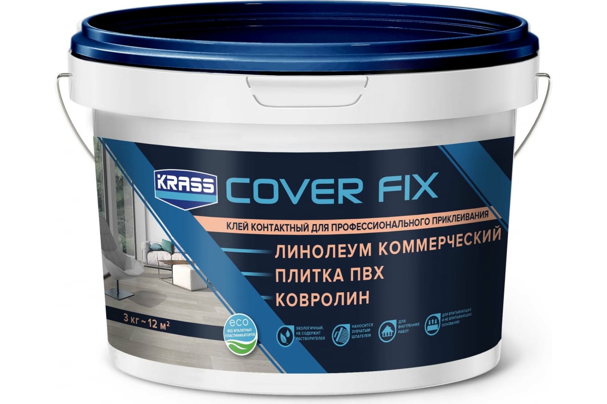 Контактный водно-дисперсионный клей KRASS 3 кг Лк-00012452 предназначен для укладки всех типов линолеума и ковровых покрытий. Рекомендуется для: линолеума коммерческого, плитки ПВХ, ковролина. Состав полностью готов к использованию.
