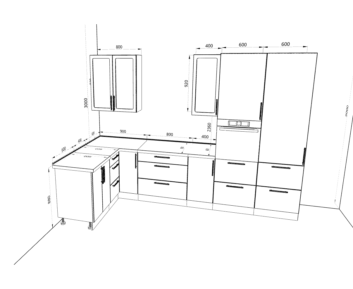 • Длина кухни 1600 мм 1800 мм 2000 мм 3300 мм