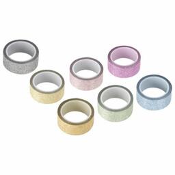Клейкие ленты полимерные для декора с блестками "ПАСТЕЛЬ", 15 мм х 3 м (набор 7 шт)