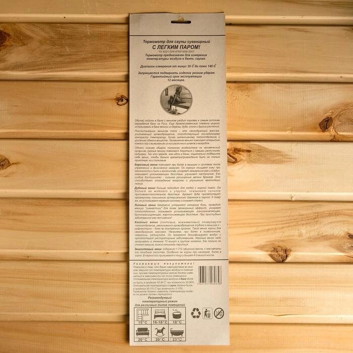 Термометр для бани и сауны "С лёгким паром" с песочными часами на 15 минут, 42х9х4.5 см