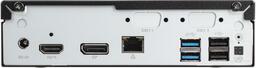 Sujungimo elementai ir pagalbinės valdymo schemos naudojamos sujungti įrenginius.3 x USB 3.2, 4 x USB 2.0, Audio In, Audio Out, DisplayPort, HDMI 1.4, RJ-45, USB Type-C