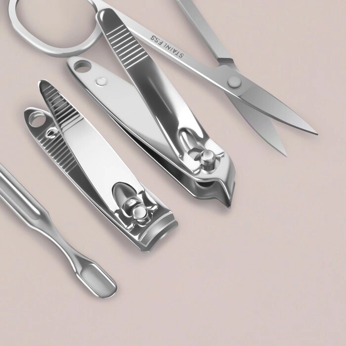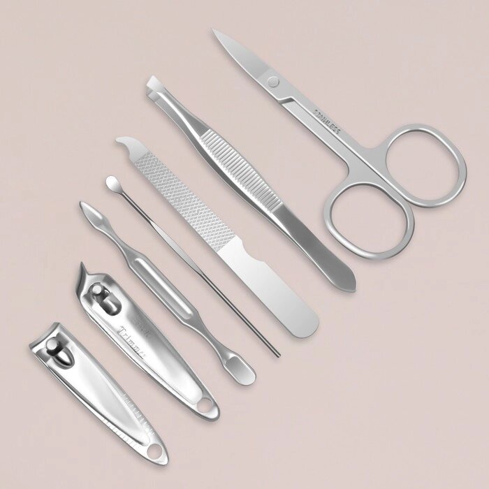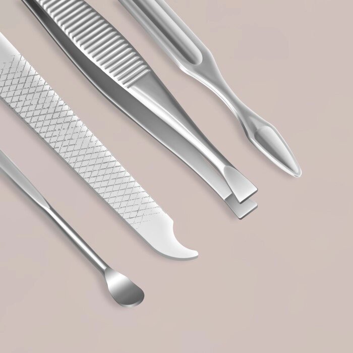• Составляющие набора Пилка, Ножницы, Пинцет, Книпсер, Пушер, Ухочистка