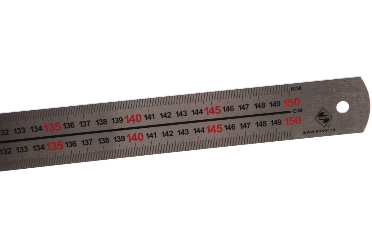 Металлическая линейка Энкор 10854 - необходимый инструмент для измерения линейных расстояний до полутора метров. Полотно выполнено из металла. Для удобства использования нанесено две шкалы.