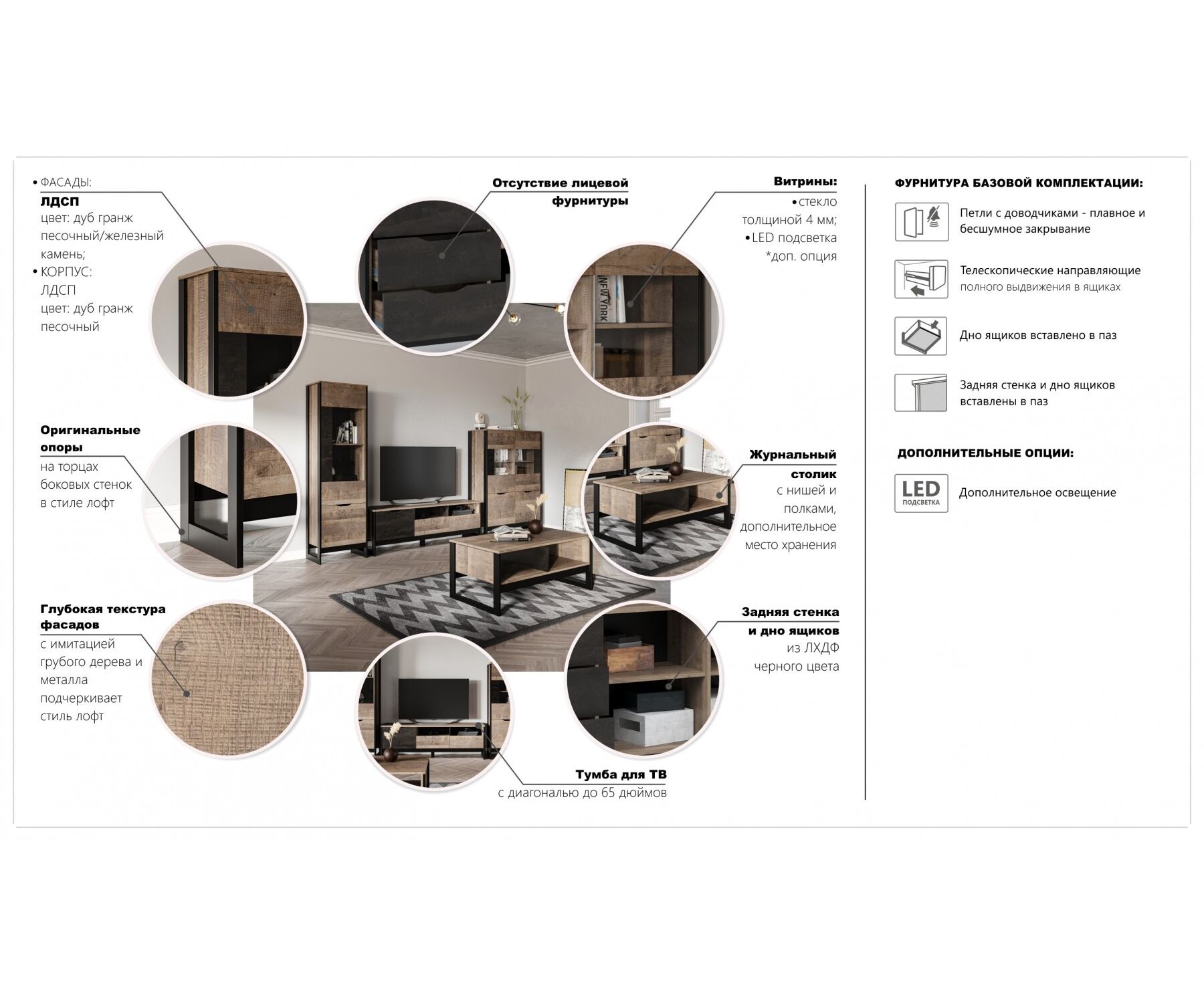 Гостиная Стокгольм (дуб гранж песочный/железный камень)