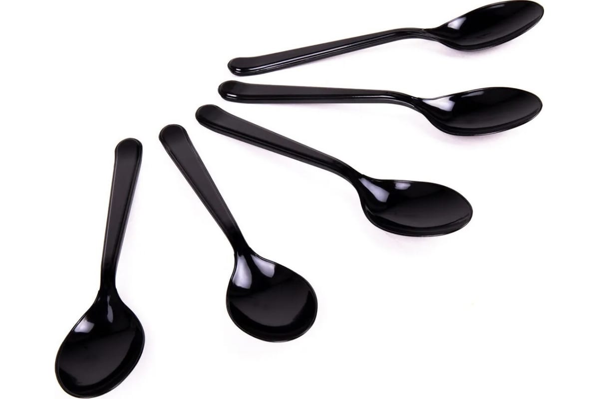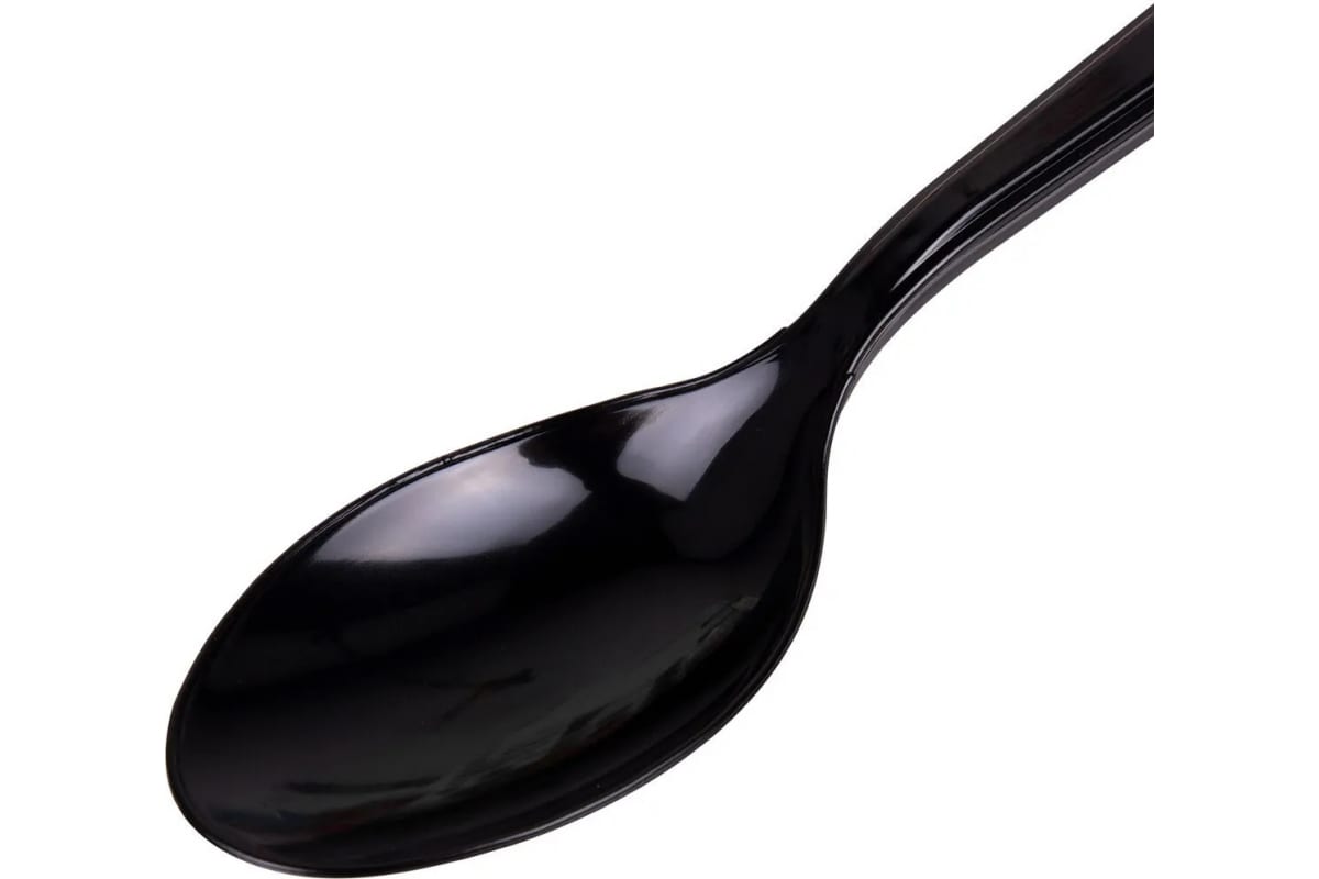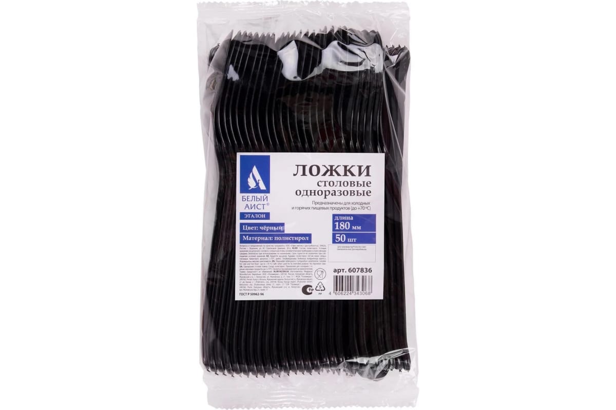 Одноразовые пластиковые столовые ложки Белый Аист 180мм, 50шт, ЭТАЛОН, черные 607836 подходят как для холодных, так и для горячих (до +70градусов) блюд.