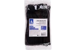 Одноразовые пластиковые столовые ложки Белый Аист 180мм, 50шт, ЭТАЛОН, черные 607836