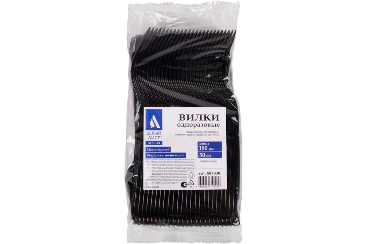 Одноразовые пластиковые вилки Белый аист 180мм, 50шт, эталон, черные 607838 подходят как для холодных, так и для горячих (до +70градусов) блюд.