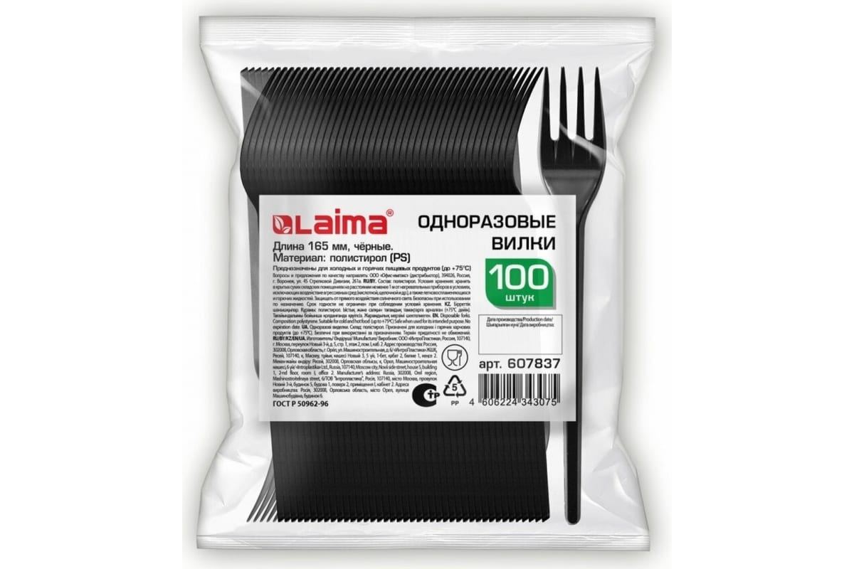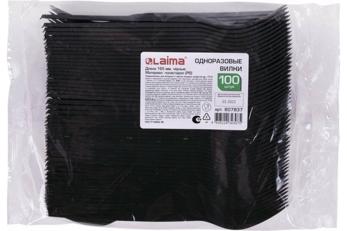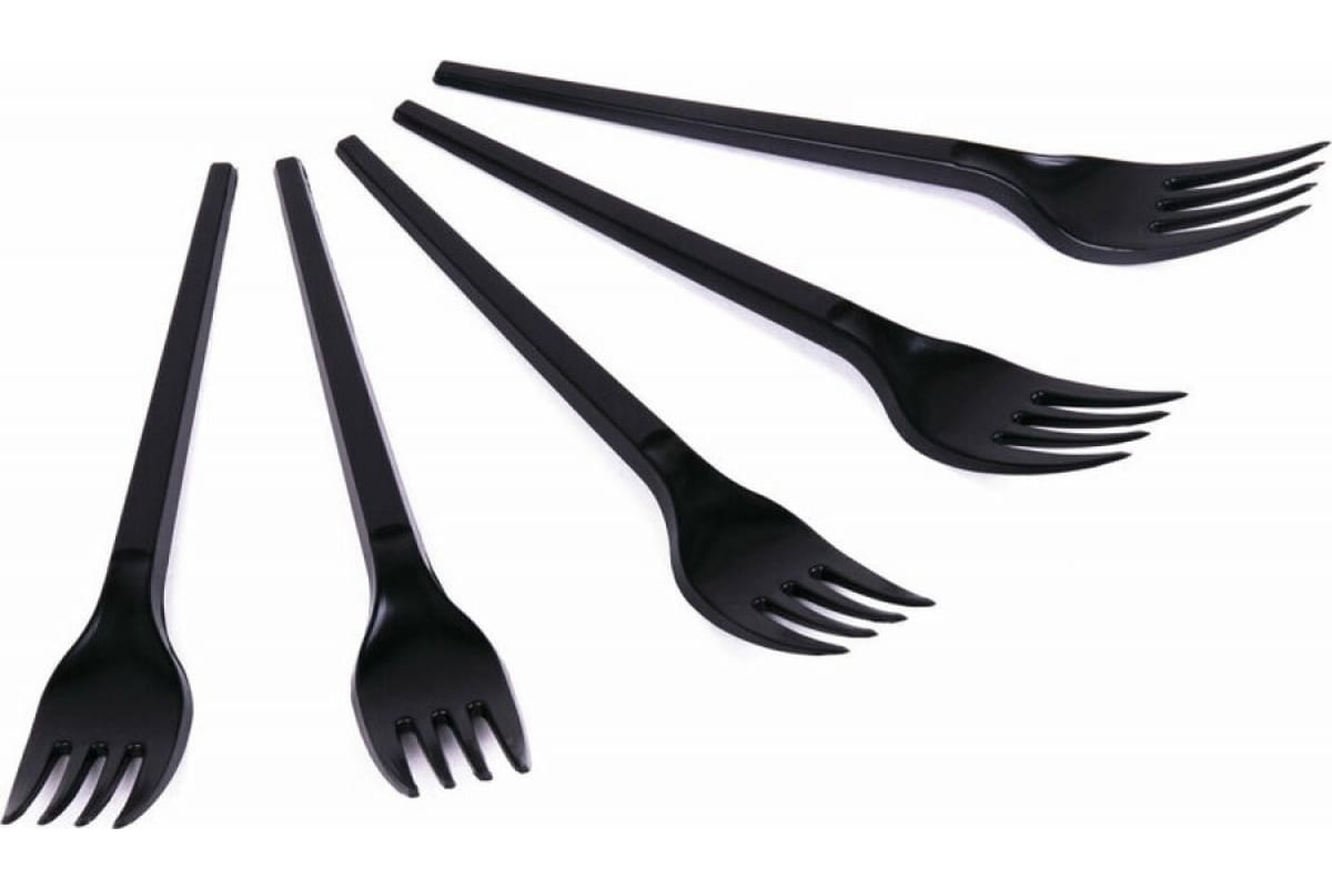Одноразовые пластиковые вилки LAIMA 165мм, 100шт, стандарт, черные 607837