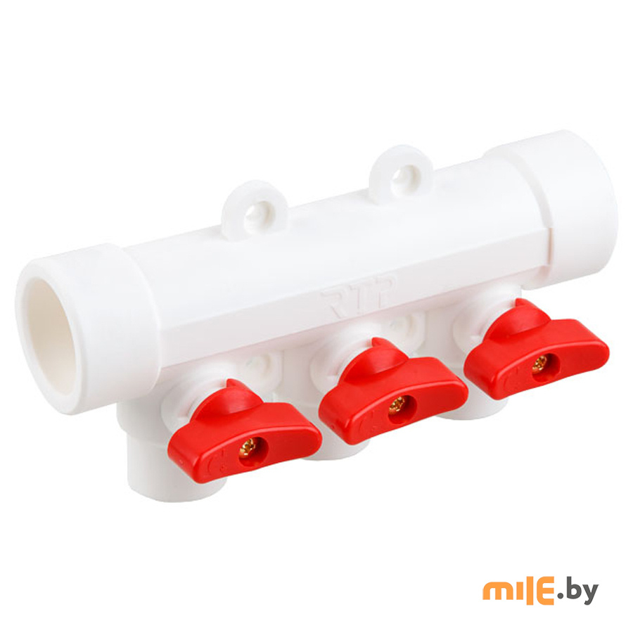 Коллектор с шаровым краном РосТурПласт PPR 32х20/3 белый/красный (28205)