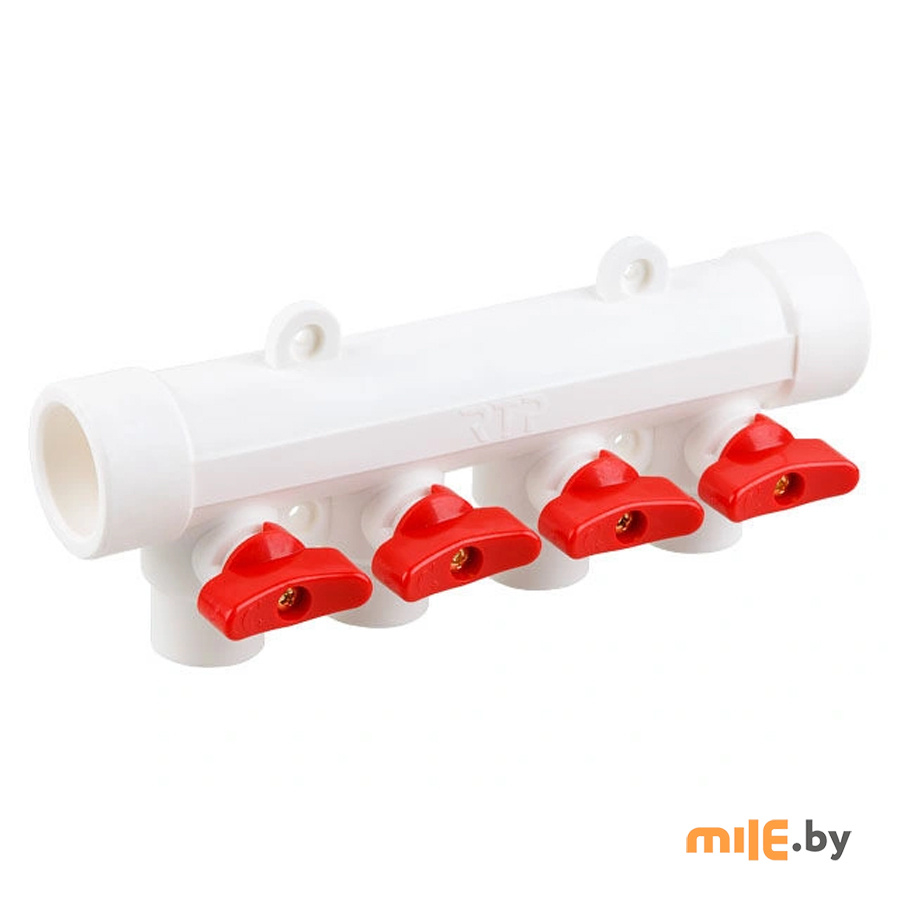 Коллектор с шаровым краном РосТурПласт PPR 32х20/4 белый/красный (28206)