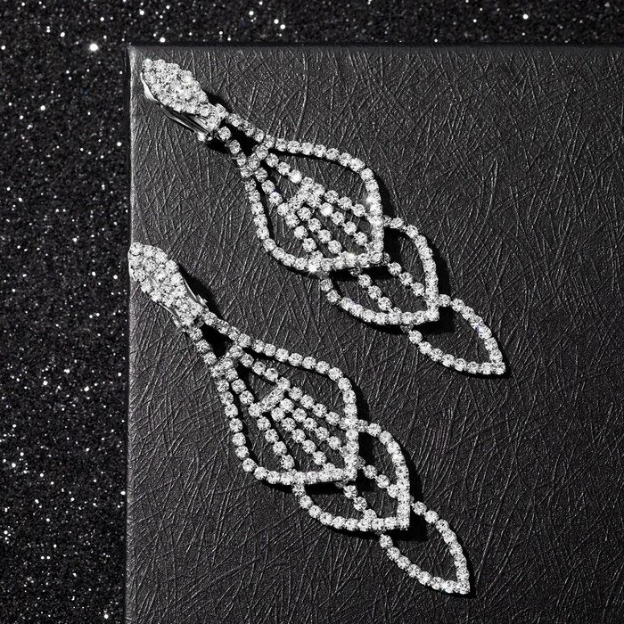 Клипсы "Вечерние" ажурные, цвет белый в серебре