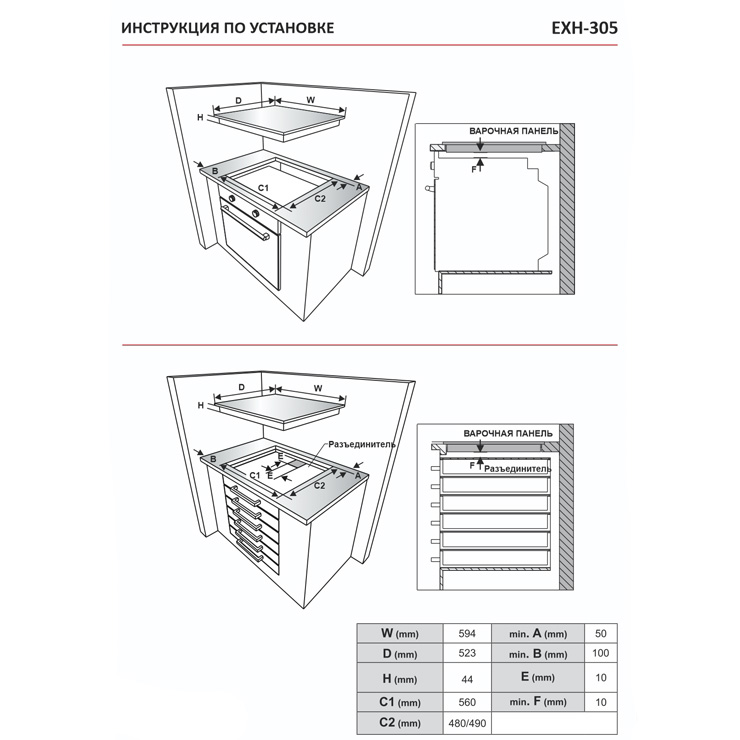 - Размеры ниши для встраивания (В*Ш*Г) 44х56х49