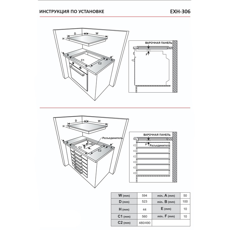 - Размеры ниши для встраивания (В*Ш*Г) х56х49