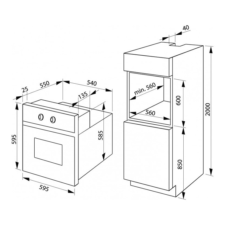 • Размеры ниши для встраивания (В*Ш*Г) 59.5х56х56