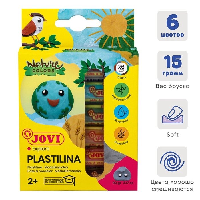 Пластилин 90г JOVI Nature, 6 цветов, картон, растительный, картон, европодвес