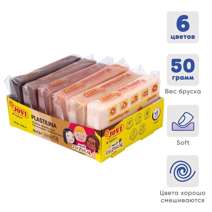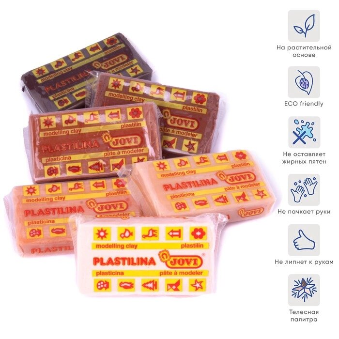 Пластилин 300г JOVI Телесный, 6 цветов, растительный, картон