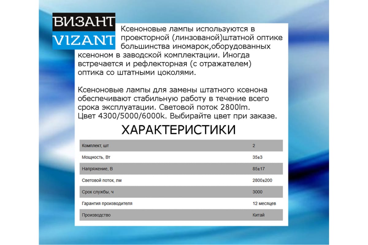 - Тип лампы ксеноновая