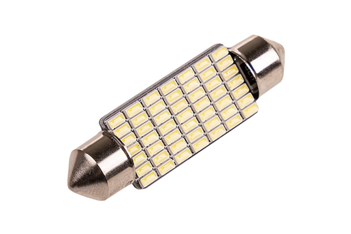 Автолампа диод SKYWAY T11 C5W 49 SMD диодов 1-контурная 41мм обманка белая S08201405