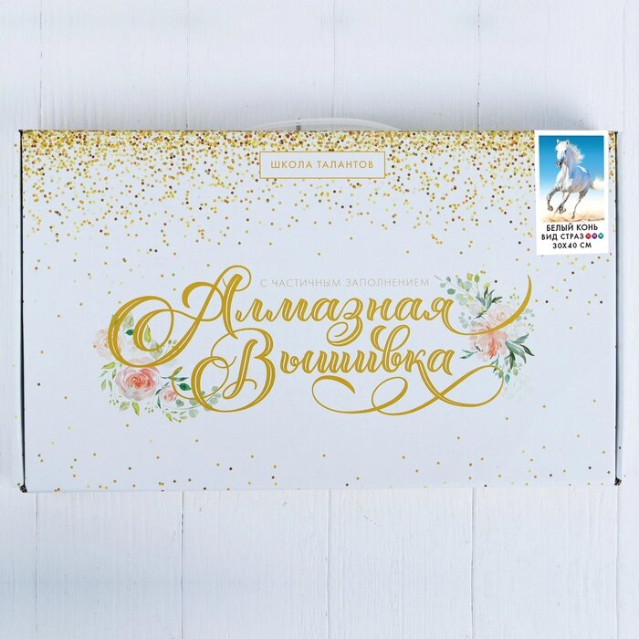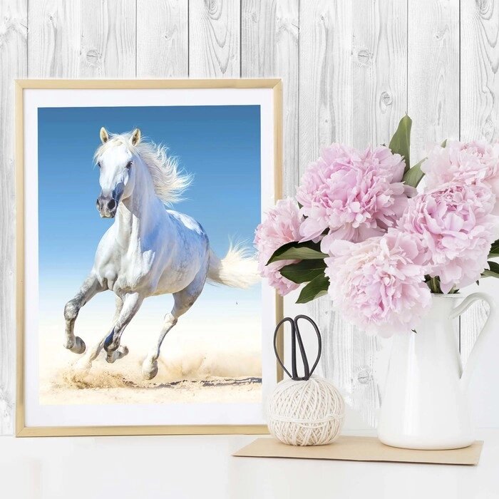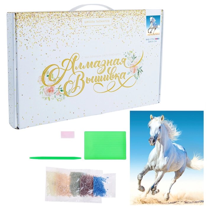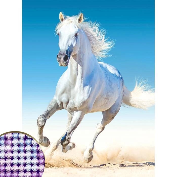 Алмазная вышивка с частичным заполнением "Белый конь", 30 х 40 см