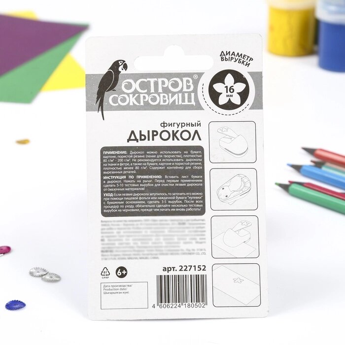 Дырокол фигурный "Цветок", диаметр вырезной фигуры 16 мм