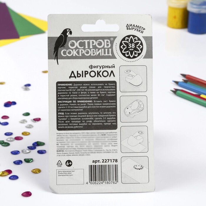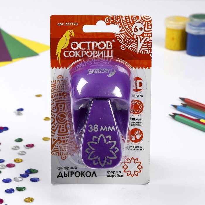 Дырокол фигурный 3D "Цветок", диаметр вырезной фигуры 38 мм