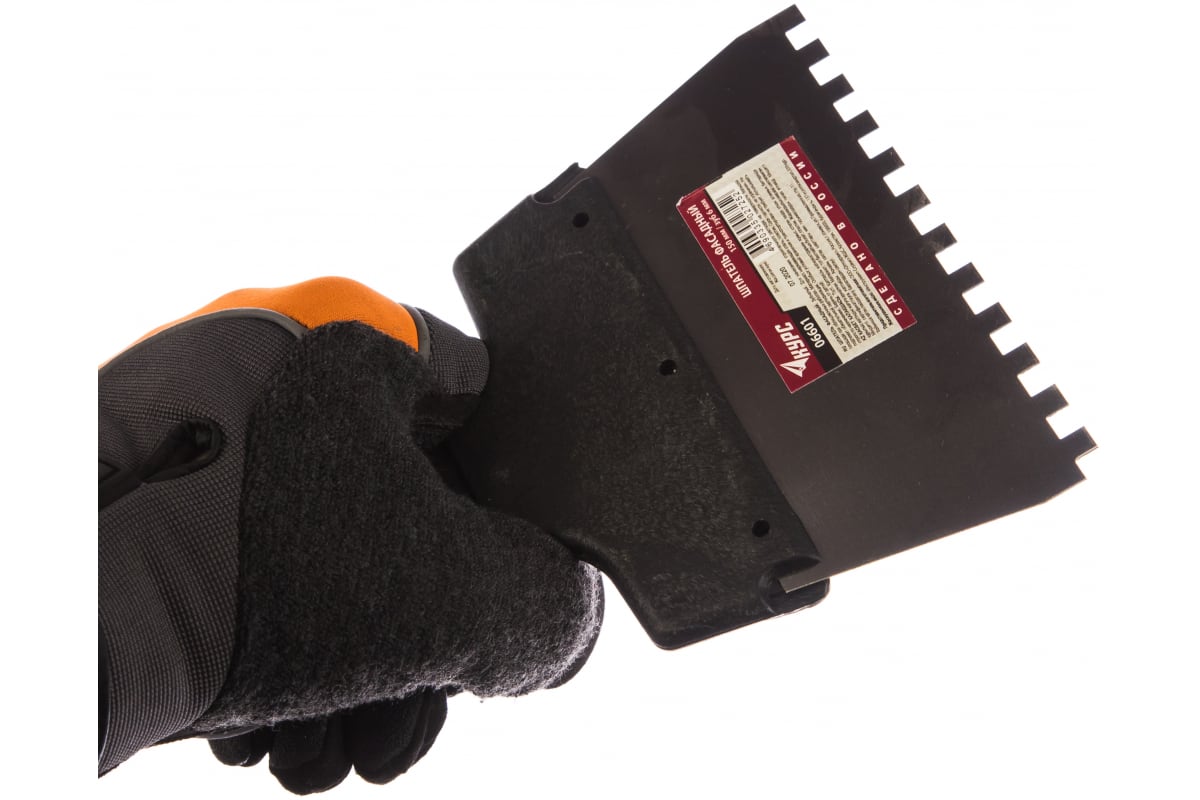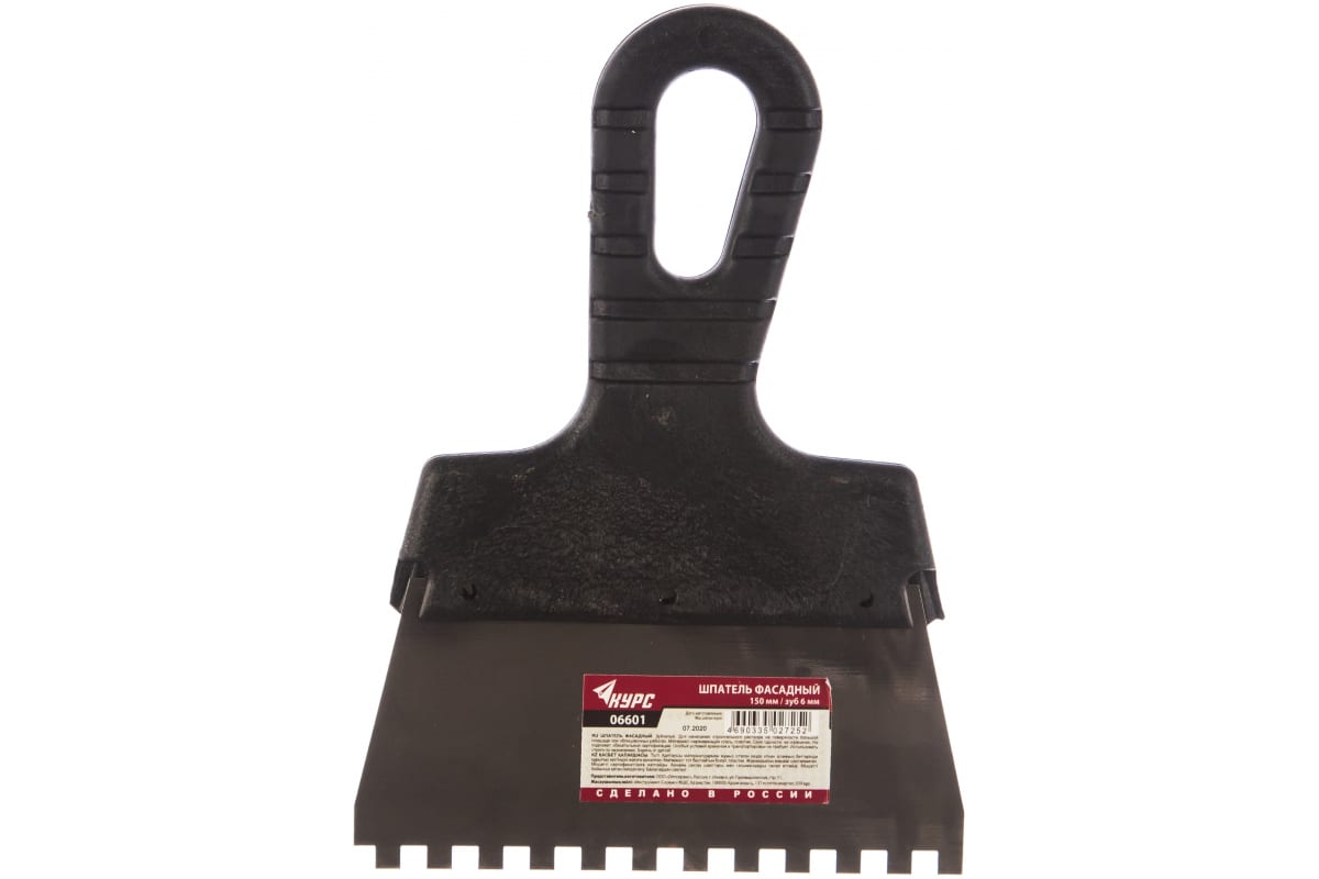 Фасадный нержавеющий зубчатый шпатель 150 мм / зуб 6 мм КУРС 06601 помогает быстро наносить на вертикальные и горизонтальные поверхности любые объемы раствора.