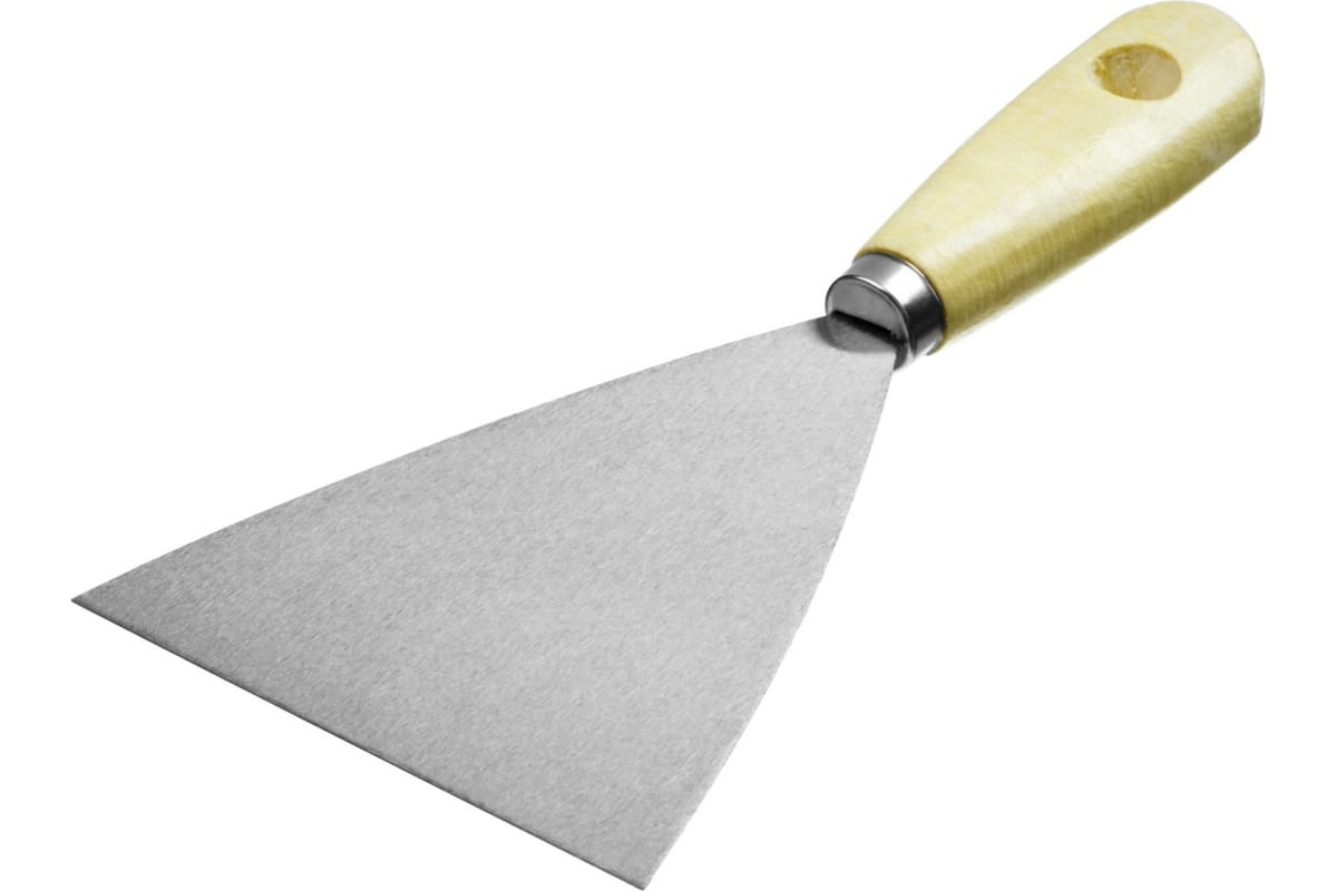 Шпатель стальной c деревянной ручкой, 100 мм MIRAX 1000-100_z01 представляет собой надежный и простой инструмент для проведения отделочных работ различной сложности. Стальное лезвие обладает хорошей гибкостью для высокой эффективности работы.