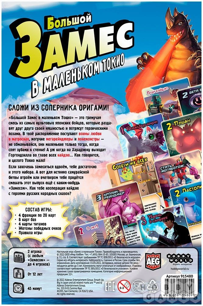 Напоминаем вам, что “Большой Замес в маленьком Токио” – это самостоятельная игра для двух игроков, но вы легко можете объединить её с базовой игрой “” и любыми дополнениями, чтобы получить ещё больше интересных комбинаций и возможность играть большой компанией.