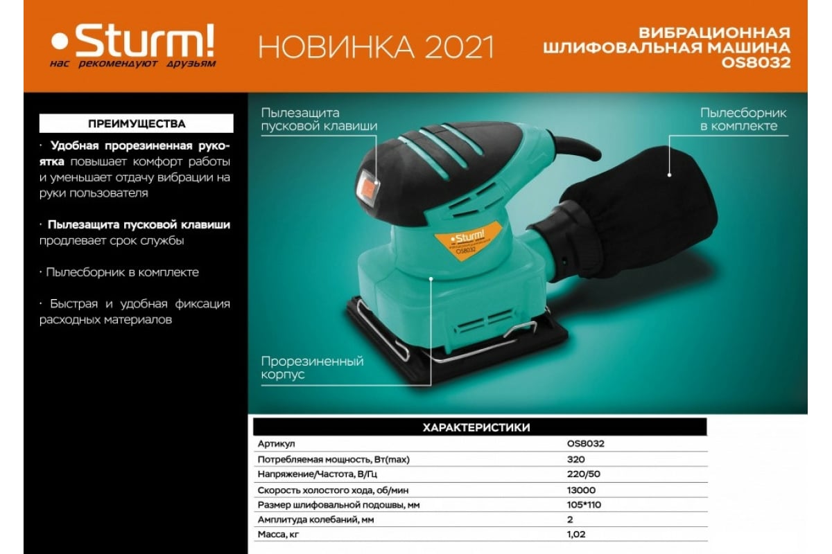 Вибрационная шлифовальная машина Sturm OS8032