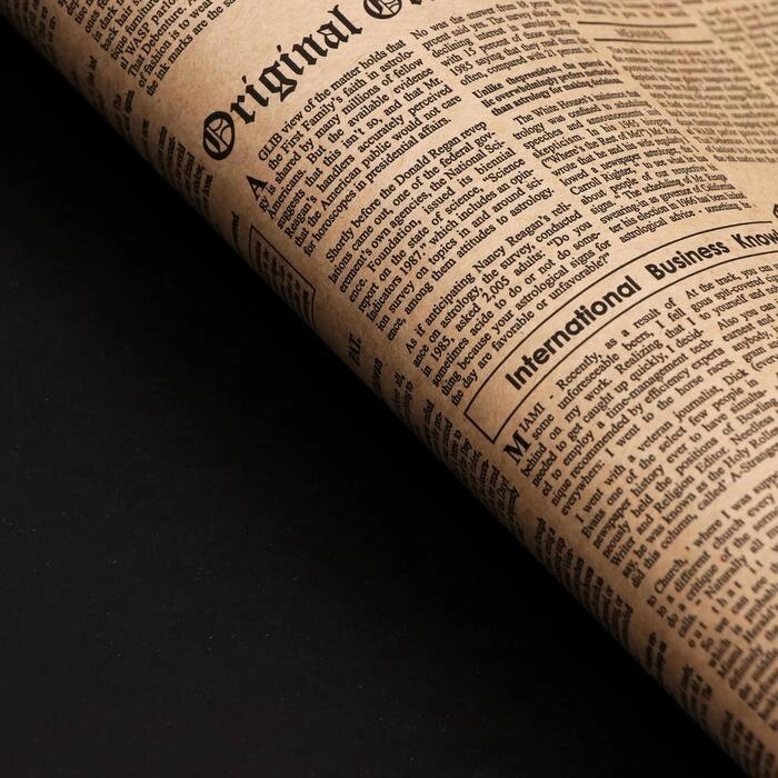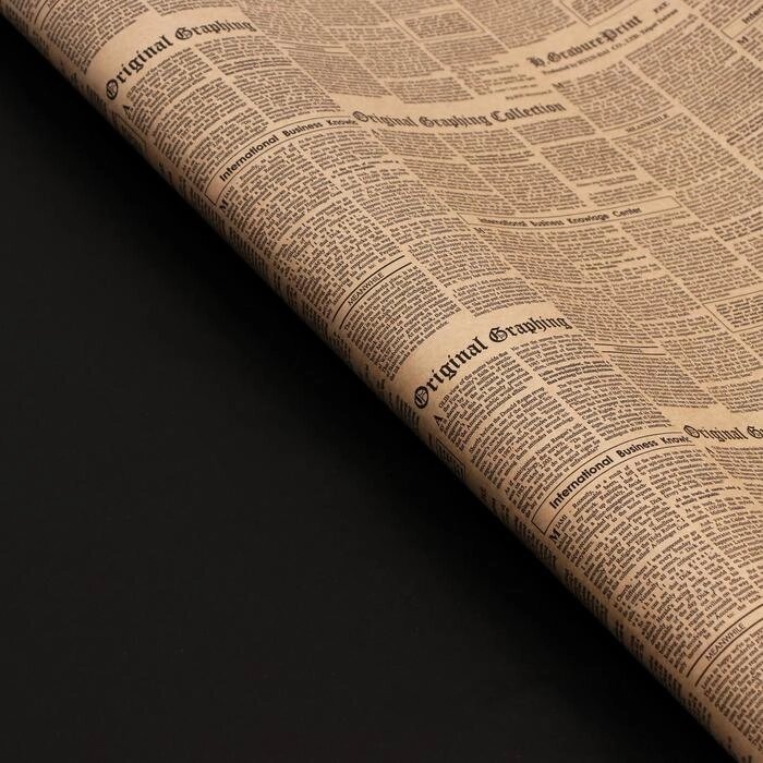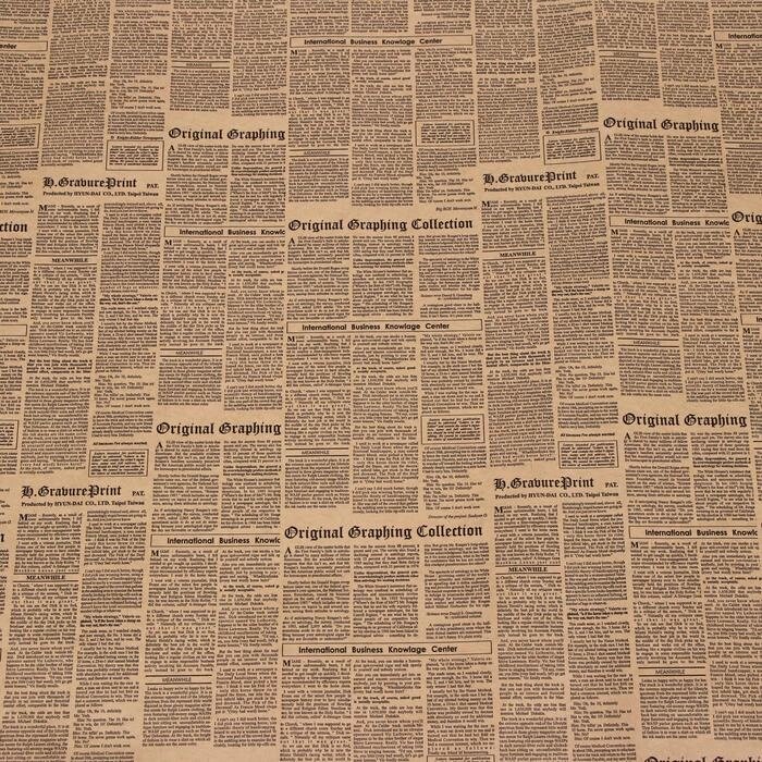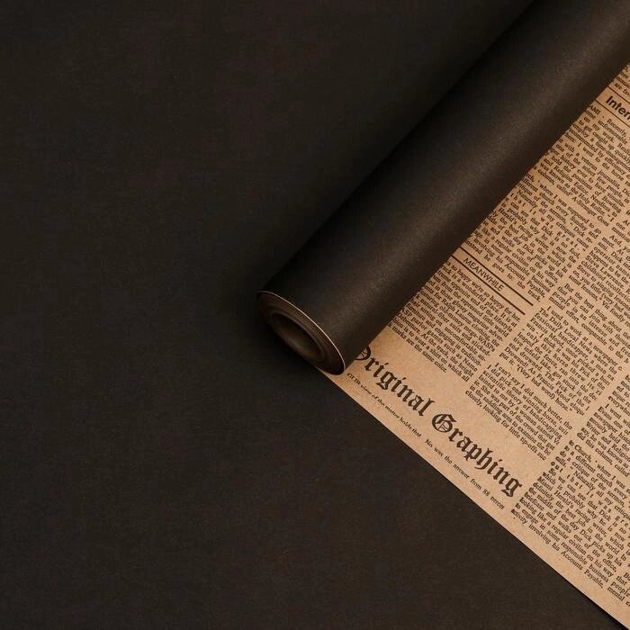 Бумага крафт, двусторонняя, черный-газета, 0,6 х 10 м