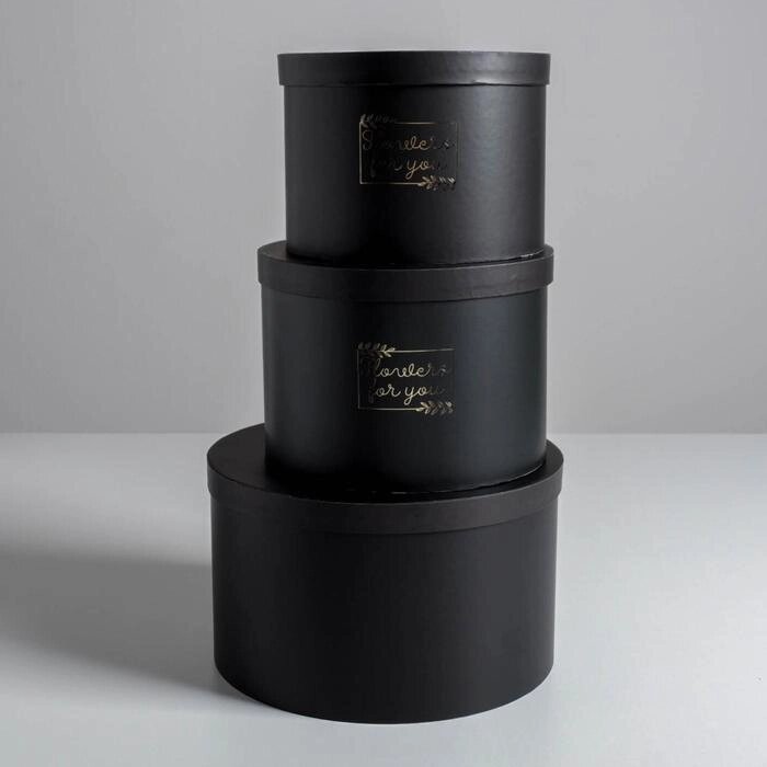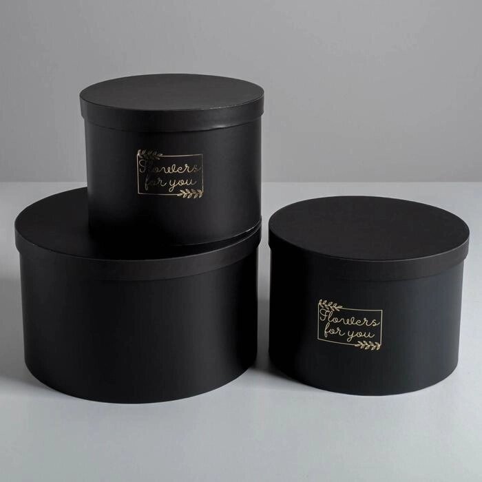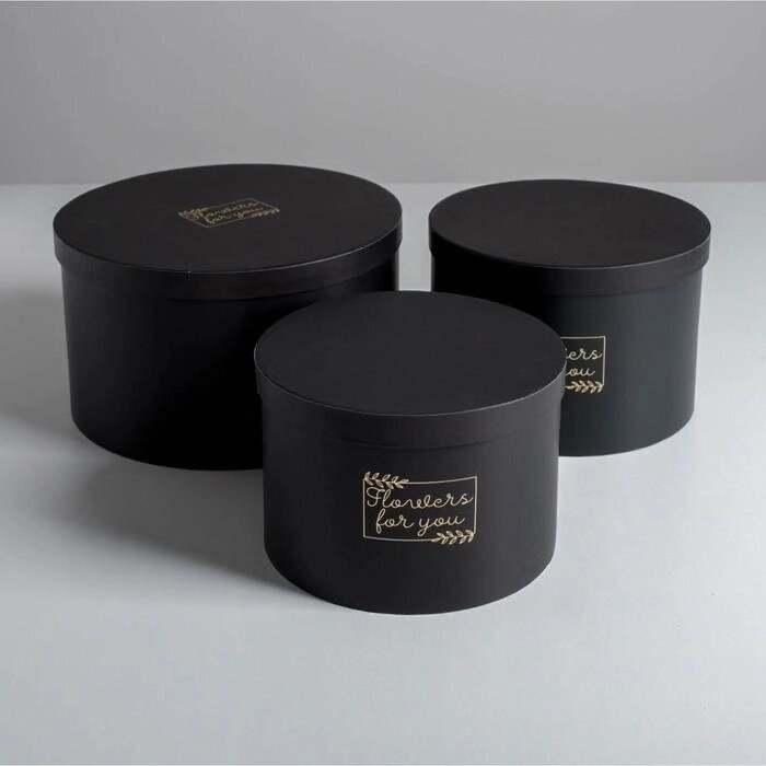 Набор шляпных коробок для цветов 3 в 1 "Магия чёрного", 18 13 см - 25 15 см