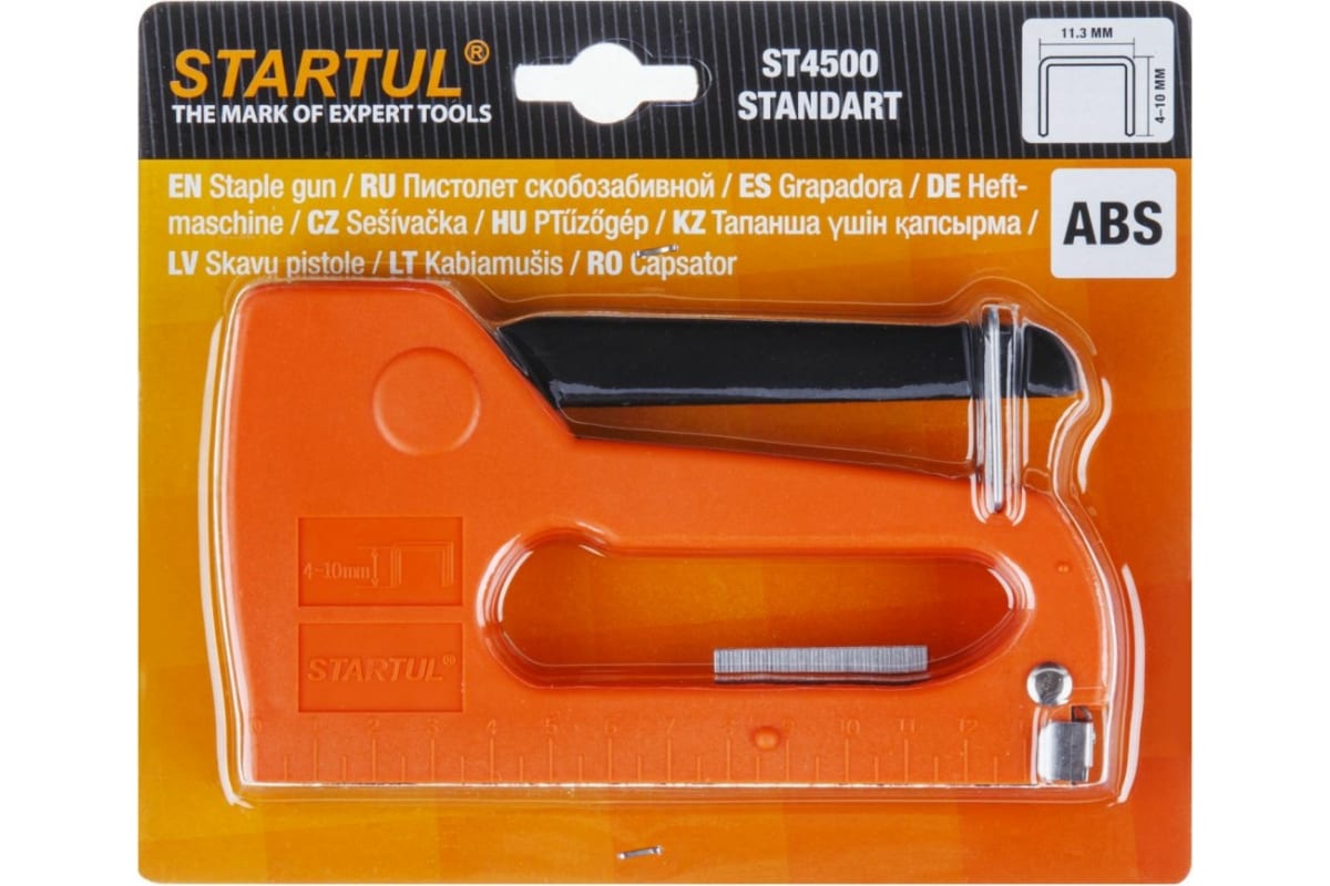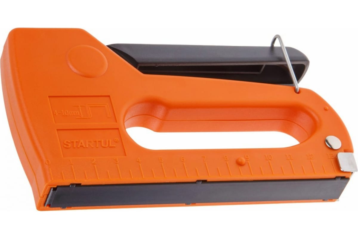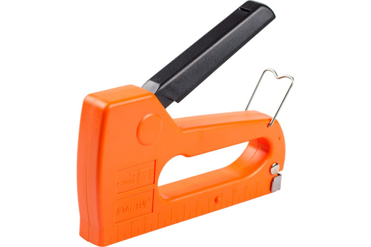Степлер STARTUL строительный ST4500 обеспечивает быстрое и прочное соединение листовых материалов. Инструмент обладает прочным корпусом и плавным ходом рукоятки. Можно работать в любых условиях. Мощность допускает применение степлера с металлическими скобами больших размеров.