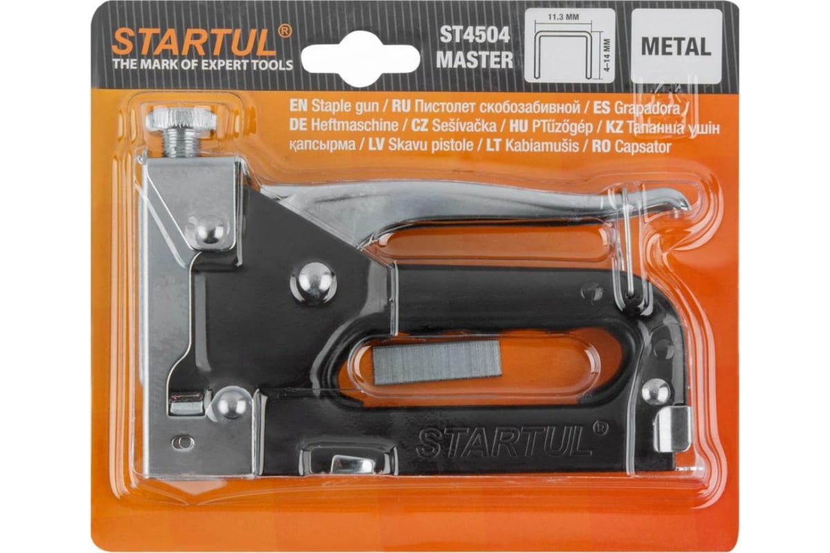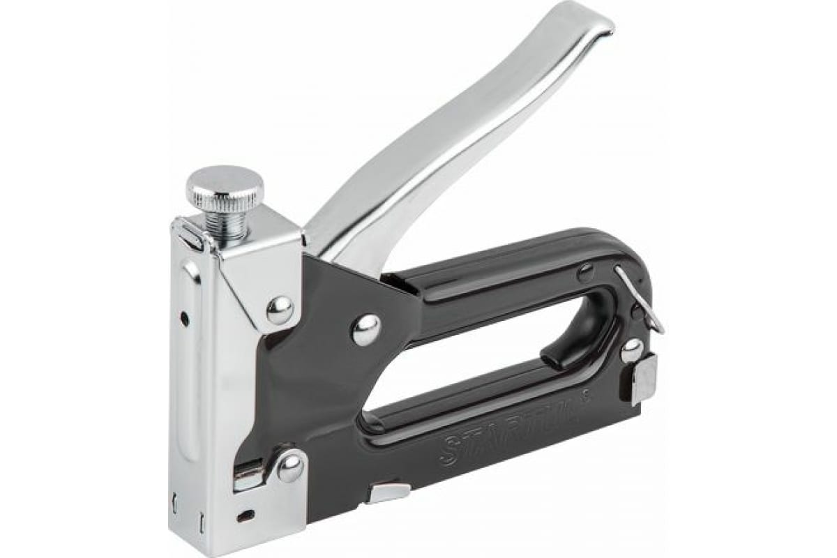 Степлер STARTUL строительный ST4504 обеспечивает быстрое и прочное соединение листовых материалов. Инструмент обладает прочным корпусом и плавным ходом рукоятки. Можно работать в любых условиях. Мощность допускает применение степлера с металлическими скобами больших размеров.